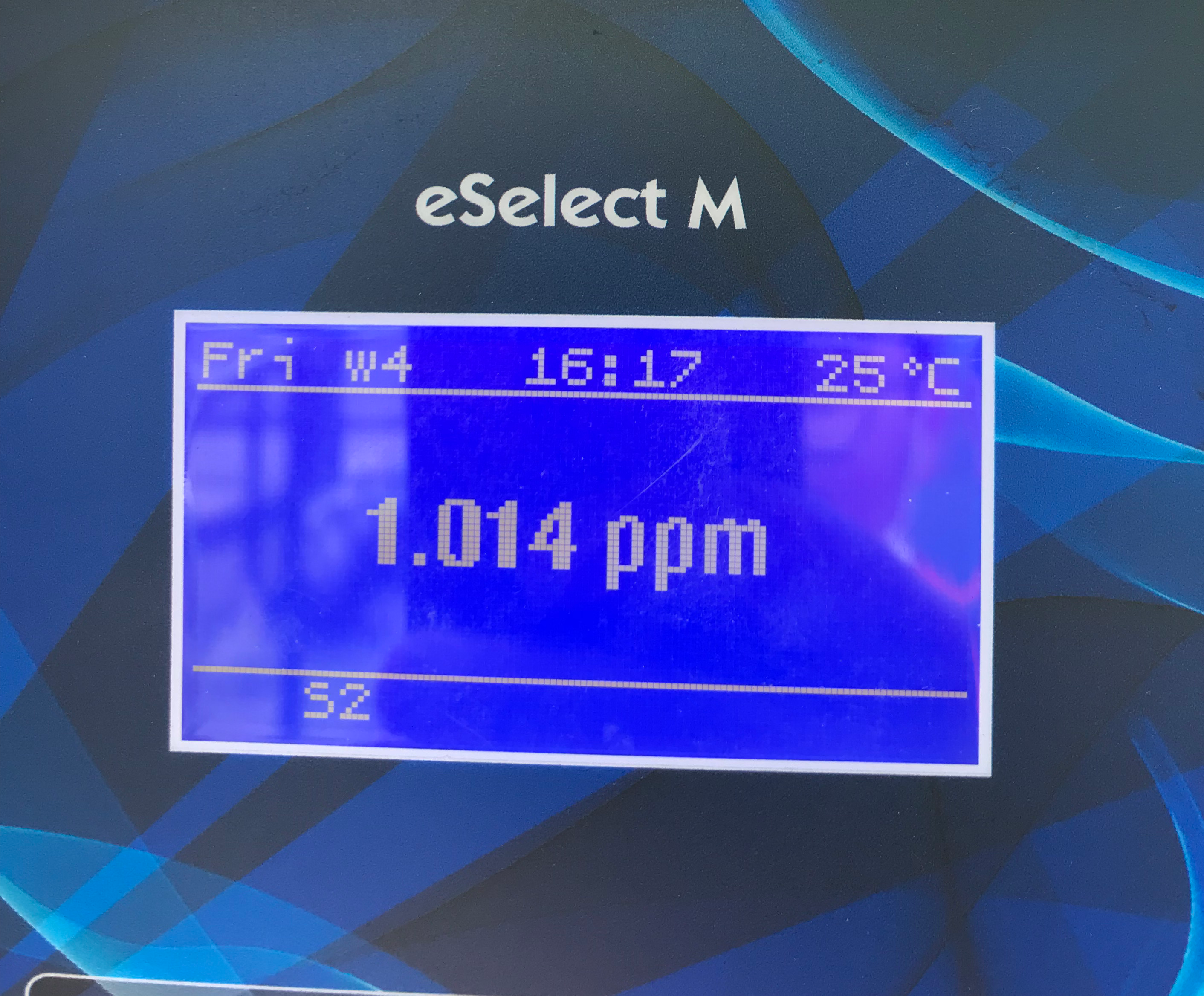 Mediante la pantalla es posible seleccionar y visualizar la concentración de cloro requerida.