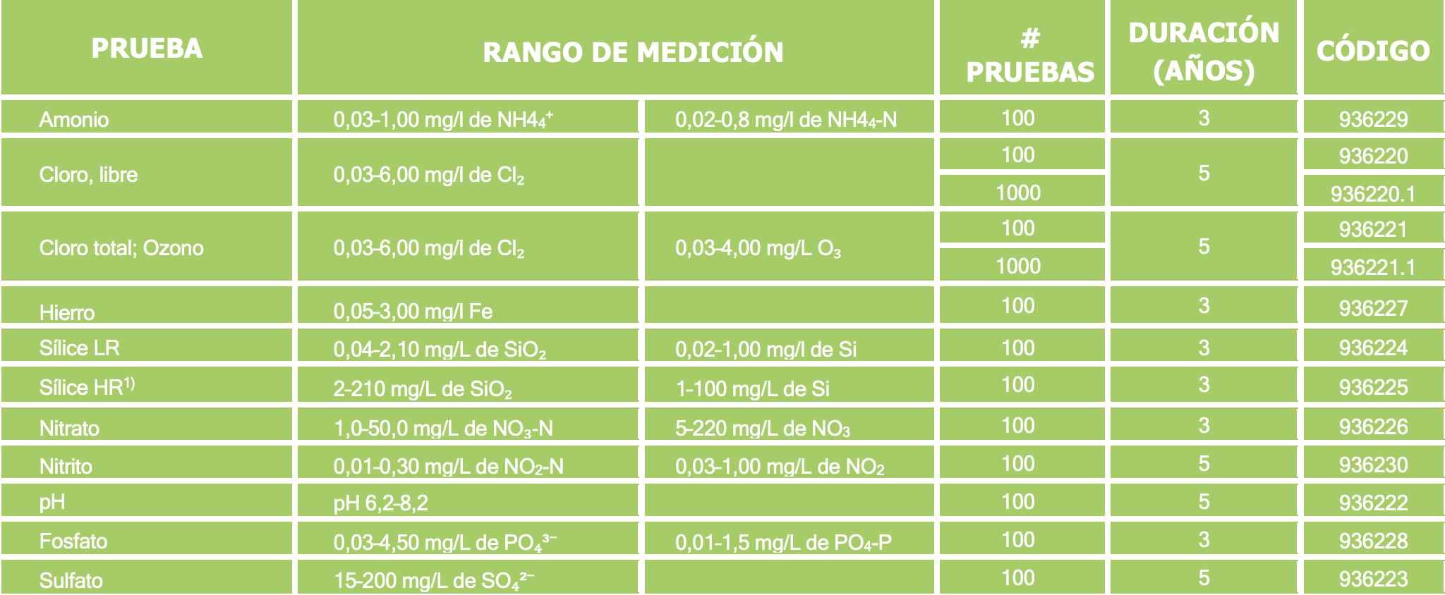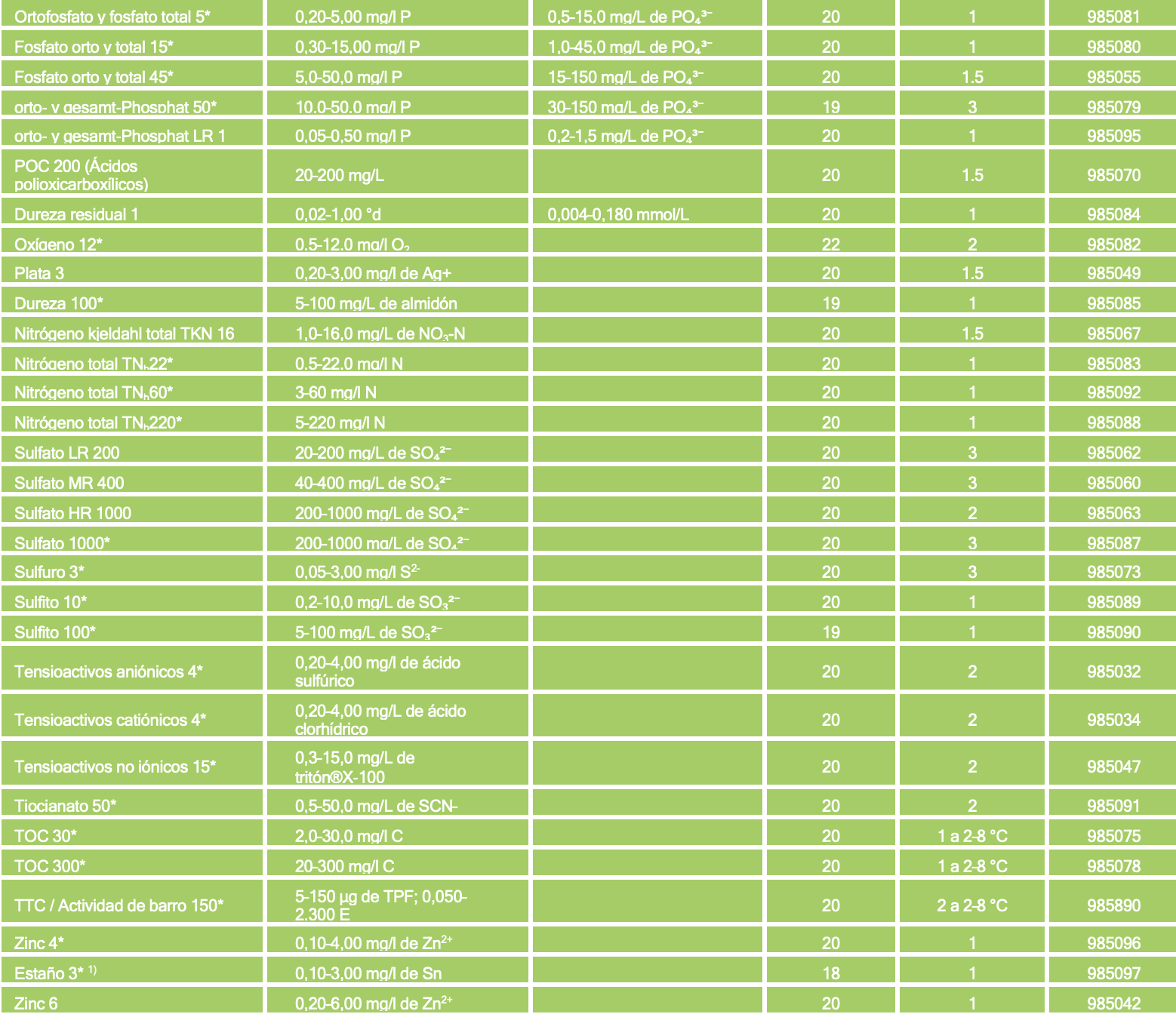 Sólidos suspendidos totales (TSS); 690 nm; 70 – 750 mg/L