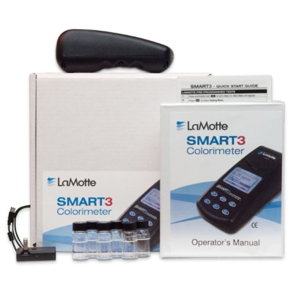 El colorímetro SMART® 3 compacto es ideal para el análisis del agua en el campo o en el laboratorio. Un software fácil de usar permite al analista elegir un factor de prueba entre más de 80 calibraciones preprogramadas para los sistemas de reactivos LaMotte.