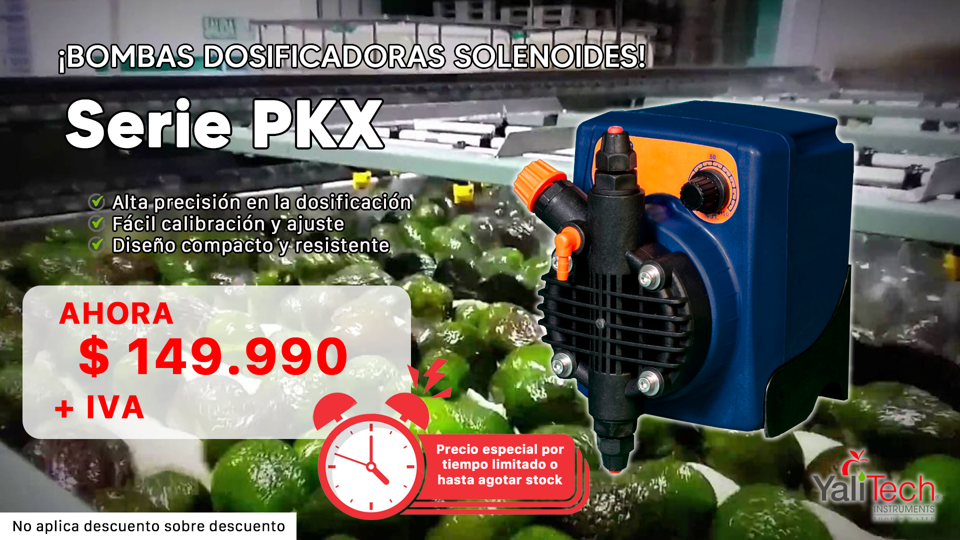 Por eso, este mes traemos una oferta especial por tiempo limitado en nuestras bombas dosificadoras solenoides Serie DLX y Serie PKX, reconocidas por su confiabilidad, precisión y durabilidad en terreno.