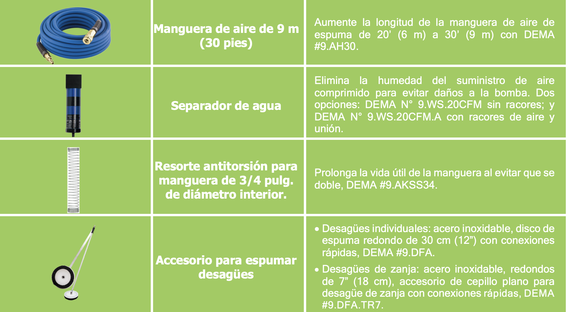 • Manguera de aire de 6 m (20 pies) y protectores de manguera integrados (solo para unidades de espuma).
